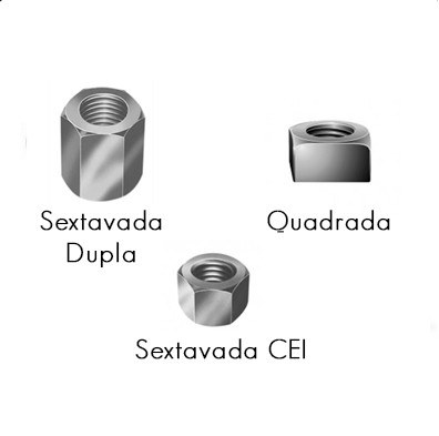 Descrição: Utilizada em conjunto com os parafusos francês, sextavado, barra roscada e haste, desde que a rosca e resistência sejam compatíveis